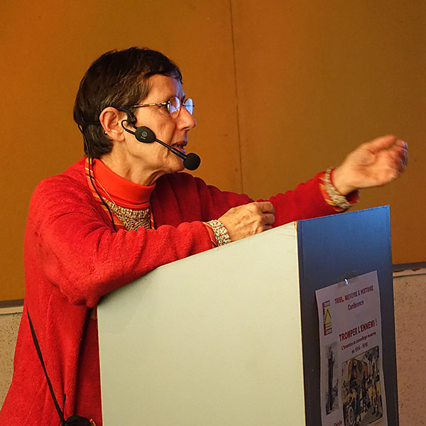 Aurait-on pensé qu’il y eût tant à dire sur le camouflage durant la Grande Guerre ? Pourtant, lors de sa conférence, le 14 janvier 2017, Cécile Coutin1 a su captiver le public triellois pendant près de deux heures en nous montrant que ce sujet était aussi vaste que pittoresque. Érudite passionnée d’histoire et d’archéologie, mais aussi de peinture, de photographie et même de... danse classique2, Cécile Coutin sait séduire son auditoire, tant elle est passionnée par son sujet, déroulant sa présentation sans même avoir recours à la moindre note.