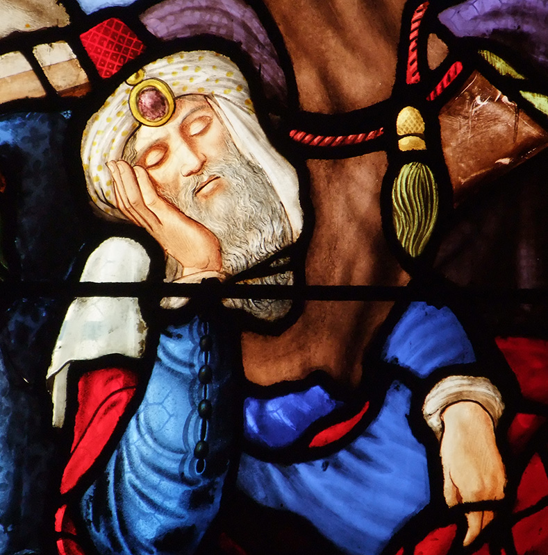 les modifications du style au fil du temps, de la fin du roman au gothique flamboyant, les accidents, les aléas de consolidation avec de disgracieux étrésillons et enfin la restauration respectueuse de son passé. Puis les vitraux semblèrent s’illuminer naturellement et l’arbre des rois jaillit du ventre de Jessé, le Pendu descendit de son gibet. Le laser pointa les vêtements rouges, symboles de puissance, les étoffes jaunes damassées du traître Judas et de la pécheresse Marie-Madeleine ou le manteau bleu virginal. Les yeux encore éblouis par ces couleurs obtenues grâce à des pigments extraits de pierres aussi coûteuses que l’or, comme l’outre mer du lapis-lazuli, nous sortîmes et le soleil honteux de son absence au début de la matinée voulut rivaliser avec l’éblouissante lumière des vitraux. La visite se termina par l’observation extérieure des contreforts, gargouilles et pinacles au milieu desquels apparurent, facéties d’un sculpteur, un petit chien et une grenouille.